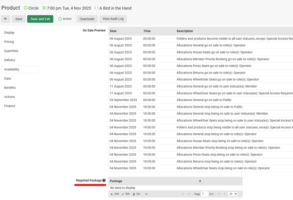 The Required Package Tool can now be found under the Availability tab, scrolling down to the bottom of the page.