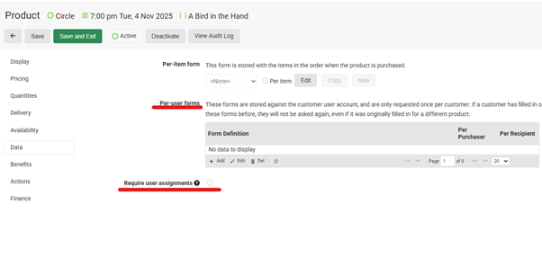 And can now be found under the Data Tab. For consistency, the Extra Information setting has been renamed Per-Item form.